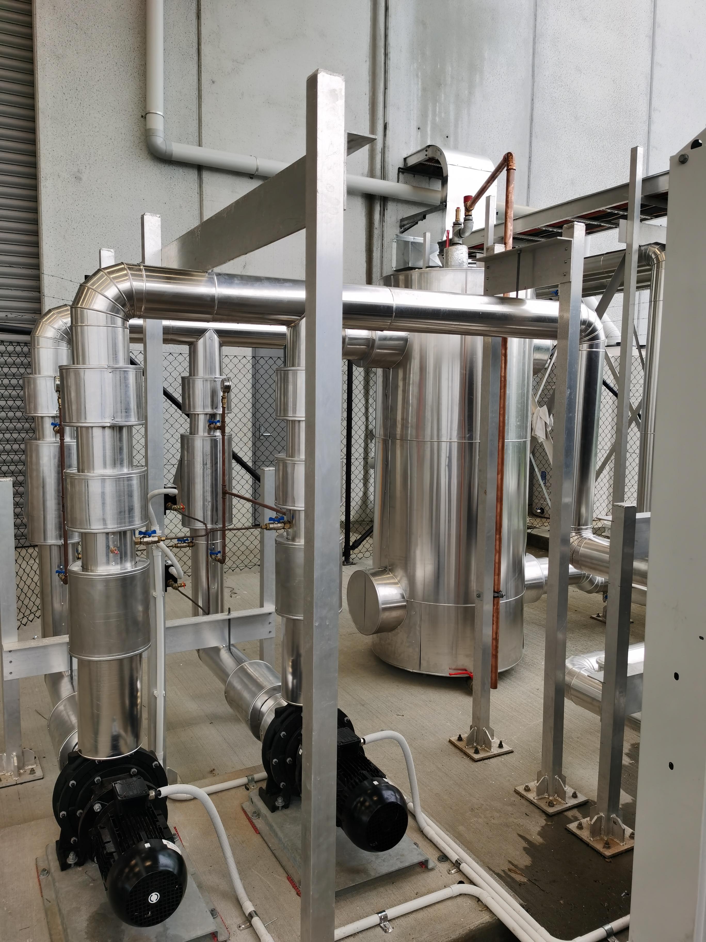 Key challenges included limited space in the heritage building's plant room, requiring the heat pumps to be disassembled and reassembled on-site, and routing pipework around existing equipment. We also had to ensure no disruption to the Art Gallery's ongoing operations and essential heating and cooling systems. Additionally, installing new electrical submains in the building’s constrained infrastructure required careful planning.